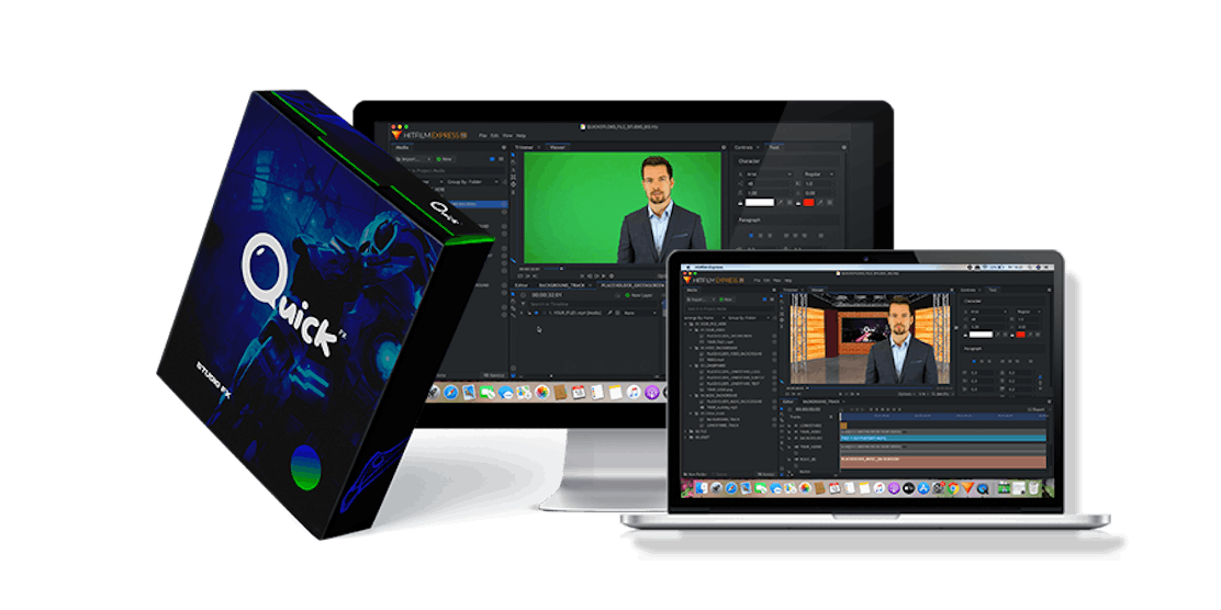 We offer you ready-to-use Quick Studio FX technology that empowers your videos with an All-in-one setup of 3D virtual studios, One-Click Green Screen Remover, Immersive Scene Creation, Virtual Sets & More for Attention-Grabbing Video Creation - Quickly and effectively, without needing a designer.